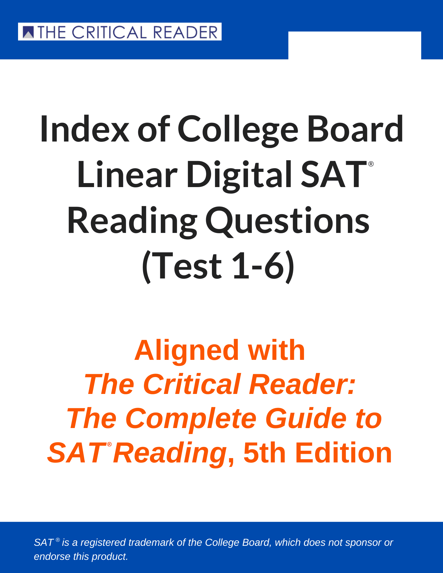 Index of Reading questions, grouped by category, from the six released linear (paper-based) digital SATs released by the College Board.