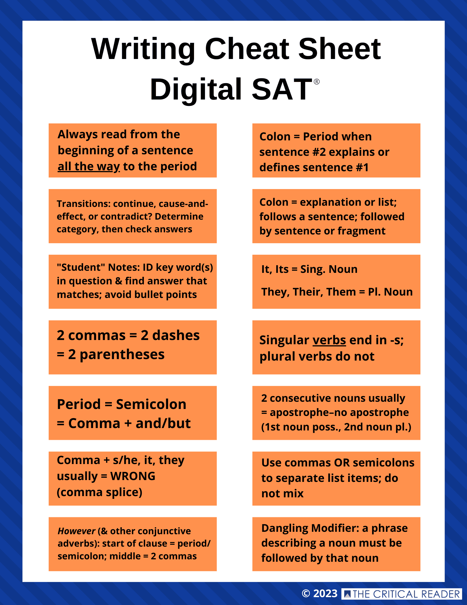 The writing cheat sheet do help.